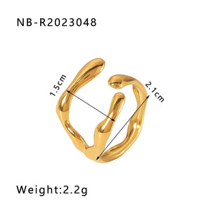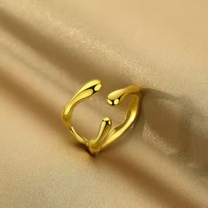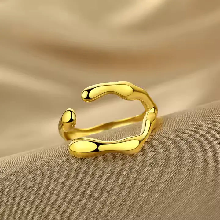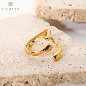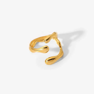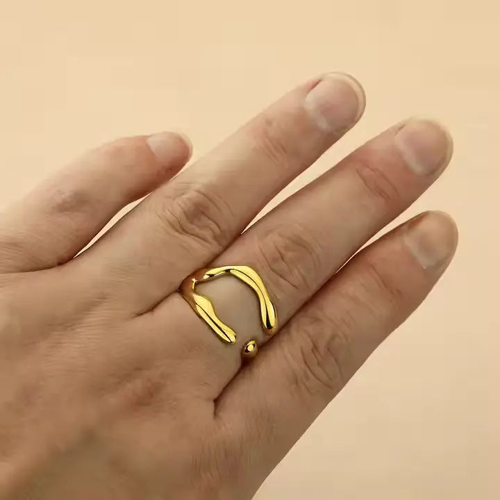 The Abstract Droplet Ring showcases a unique and modern design inspired by the fluidity of droplets. Crafted with precision, this gold-plated stainless steel ring brings an artistic touch to your accessory collection. Lightweight and adjustable, it ensures comfort and style for daily wear or special occasions.