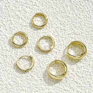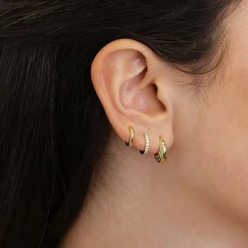 Elevate your ear game with the Aurora Hoops Set—a luxurious trio of minimalist gold hoops designed to add effortless elegance and shine to any look. Featuring three distinct styles—bold, sleek, and delicately encrusted with sparkling stones—this versatile set allows you to mix, match, and layer your way to a curated, on-trend ear stack.