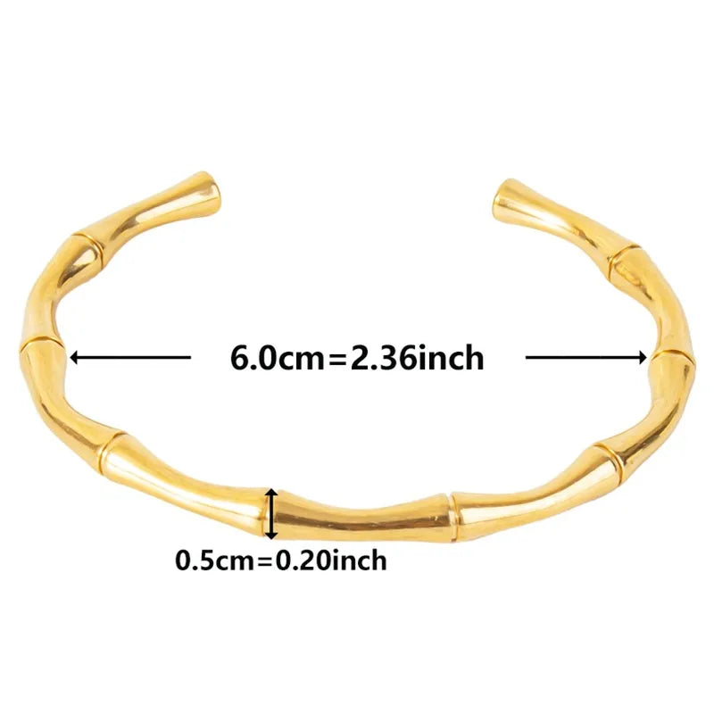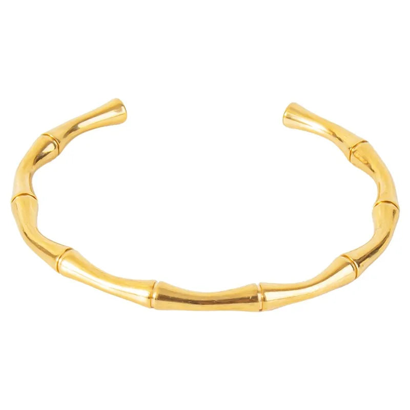 The Bamboo Bangle Bracelet is a sleek and nature-inspired design that combines minimalism with elegance. Its bamboo-like structure exudes sophistication, making it the perfect accessory for both casual and formal occasions. Crafted with precision and gold plating, this bracelet is a timeless addition to your collection.