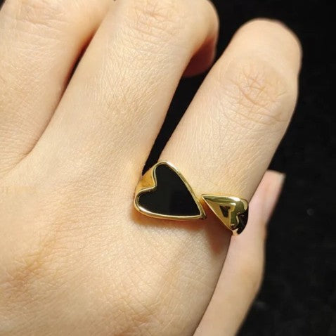 The Black Heart Ring is a striking piece of jewelry, featuring a bold black enamel heart and gold-plated stainless steel. This design represents elegance with a touch of boldness, perfect for adding a distinctive charm to your everyday style or special occasions. Crafted with a comfortable fit, this ring is both stylish and practical for regular wear.