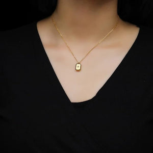 The Celestial Gold Star Pendant is a chic and modern accessory designed for the woman who appreciates understated elegance. Featuring a gold-plated rectangular charm with a delicate star motif, this pendant is a perfect blend of sophistication and contemporary design. It’s lightweight and versatile, making it an ideal choice for everyday wear or special occasions.