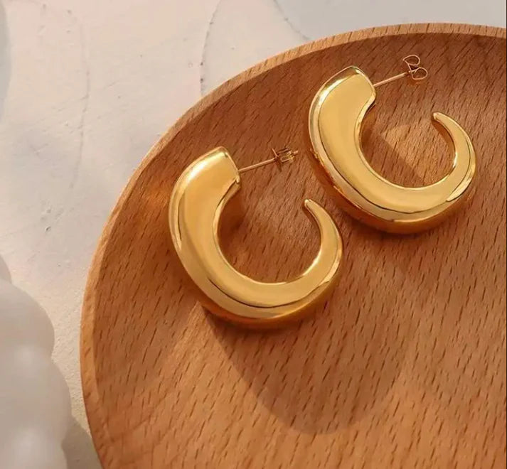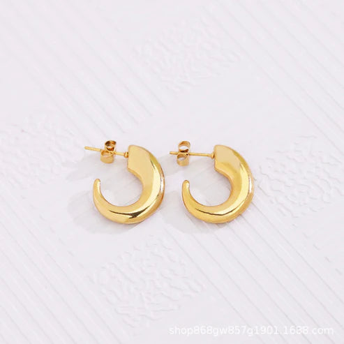 The Crescent Gold Half Hoops are the perfect blend of modern minimalism and bold elegance. Featuring a sleek crescent-shaped design with a glossy gold finish, these earrings add a statement touch to any outfit. Lightweight and crafted with hypoallergenic materials, they are designed for all-day comfort and style.