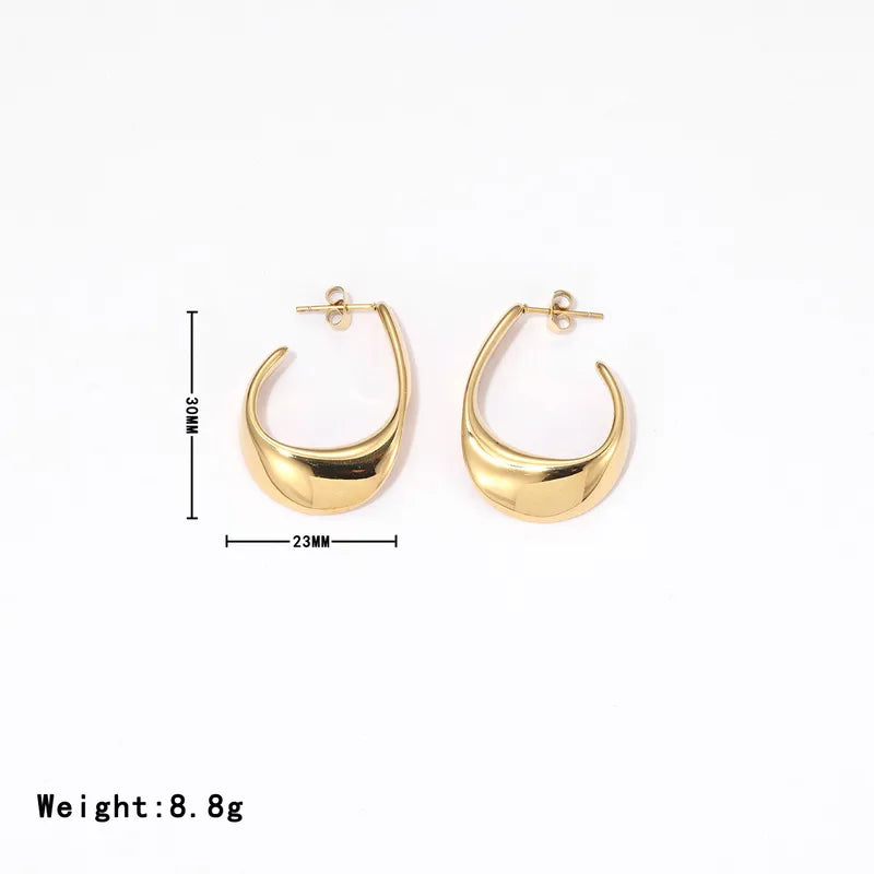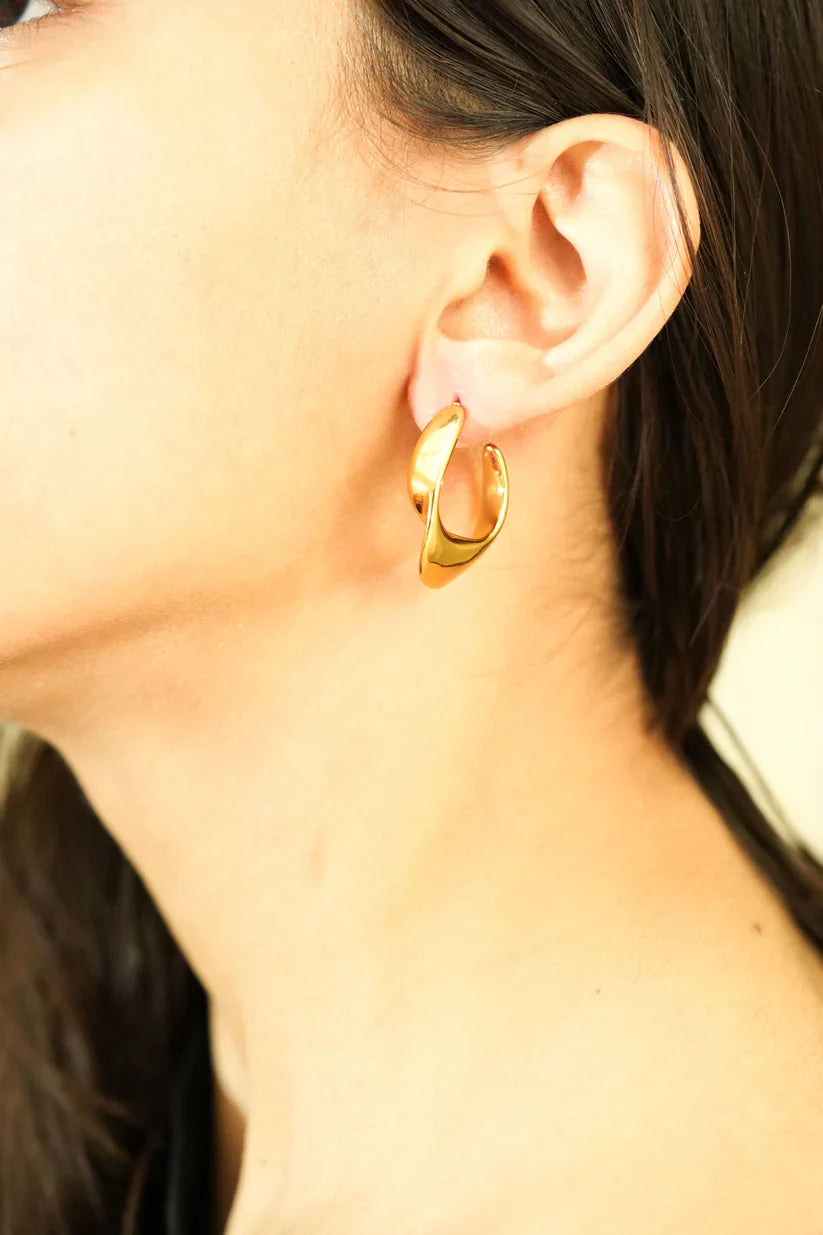 The Crescent Hoop Earrings are a perfect blend of bold and elegant design. Featuring a unique crescent shape in polished gold, these earrings are lightweight and hypoallergenic, making them comfortable for daily wear. Their statement style makes them a versatile choice for both casual and special occasions.