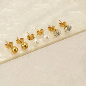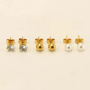 The Elegant Gold & Pearl Studs Combo offers timeless sophistication with three unique pairs of earrings, including gold-plated studs, crystal embellishments, and classic pearl designs. This set is perfect for effortlessly elevating any outfit while exuding grace and charm.