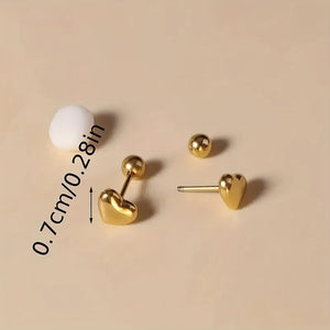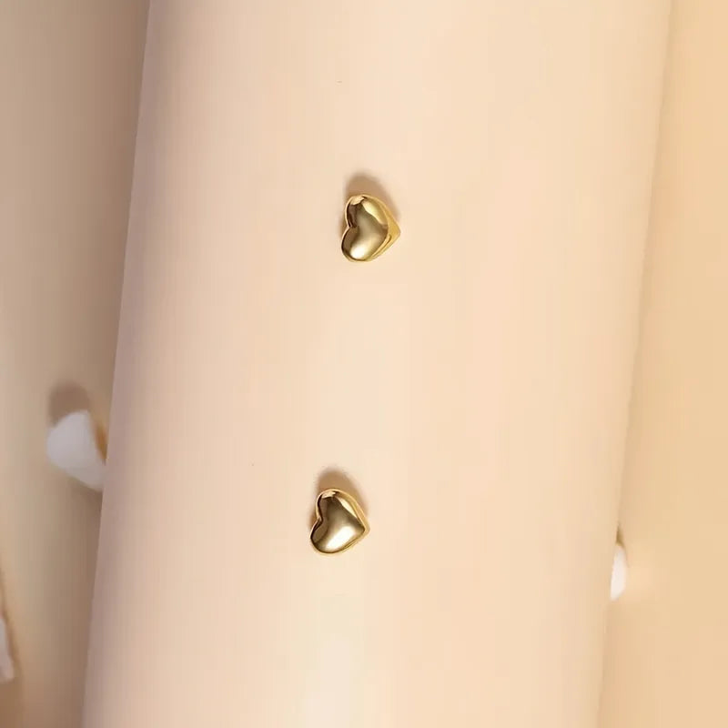The Gold Heart Stud Earrings are a perfect combination of simplicity and charm. Featuring a delicate heart design with a polished gold finish, these earrings add a touch of warmth and elegance to your daily wear or special occasions. Lightweight and comfortable, these studs are a must-have in every jewelry collection.