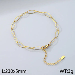 The Gold Link Anklet is a classic piece of jewelry designed for elegance and simplicity. Featuring sleek oval links with a shiny gold finish, this anklet is perfect for adding a touch of sophistication to any outfit. Lightweight and adjustable, it ensures a comfortable fit for daily wear or special occasions. Made from high-quality stainless steel, it is durable and hypoallergenic.