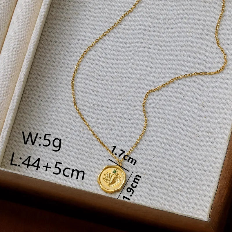 The Golden Child Memories Pendant is a heartfelt piece of jewelry, featuring a medallion engraved with delicate impressions of a child’s palm and feet. This meaningful pendant symbolizes love, innocence, and cherished moments, making it an ideal keepsake or gift for parents.