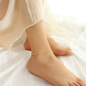 The Golden Diamond Chain Anklet combines elegance and simplicity with a unique geometric design. Featuring interlinked diamond-shaped gold plates, this anklet is a subtle statement piece that complements a wide range of styles. Crafted with hypoallergenic materials, it is lightweight and adjustable for a perfect fit, ensuring comfort and sophistication.
