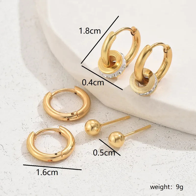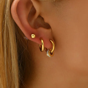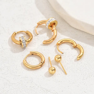 The Golden Trio Earrings set is a versatile collection featuring three unique earring designs – classic hoops, minimalist studs, and elegant charm hoops. This curated combo offers timeless elegance and unmatched adaptability, making it a must-have for any jewelry lover.