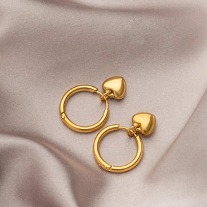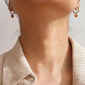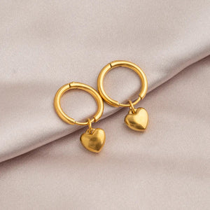 The Heart Charm Hoop Earrings are an elegant combination of simplicity and charm. Featuring small hoops adorned with delicate heart pendants, these earrings radiate a playful yet sophisticated vibe. Perfect for adding a touch of love to your everyday or evening looks.