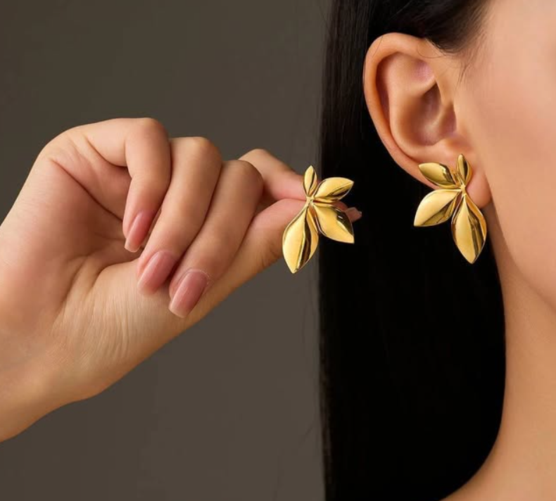 Elevate your style with these Leaf Motif Earrings in Gold, a perfect blend of nature-inspired design and modern elegance. Featuring a graceful leaf pattern in a high-shine gold finish, these earrings add a touch of sophistication to any outfit. Crafted from hypoallergenic materials, they are lightweight and ideal for all-day comfort.