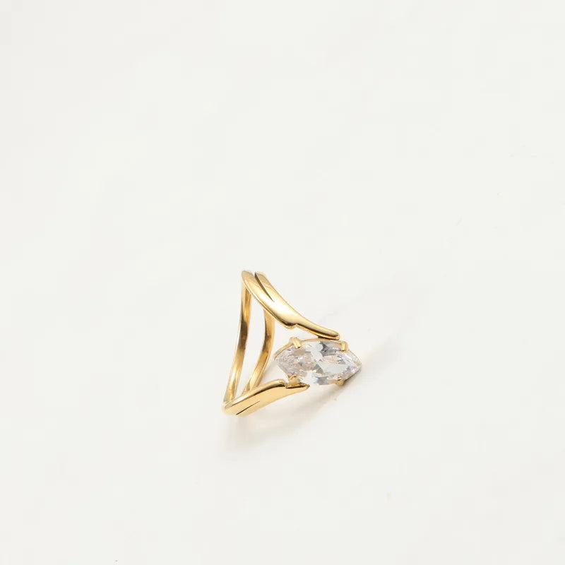 A radiant fusion of modern design and timeless elegance, the Lumière Marquise Ring features a captivating marquise-cut zircon set upon a graceful double gold band. Its open-frame silhouette creates a delicate balance of boldness and refinement, making it the perfect piece for both everyday wear and special occasions.