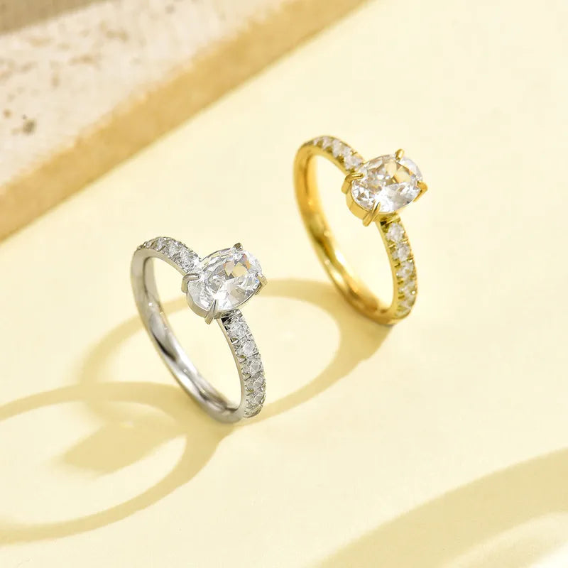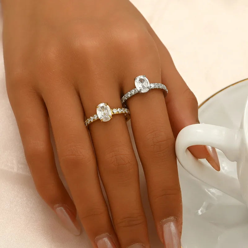 The Lustra Oval Solitaire Ring is a radiant expression of grace and sophistication. Featuring a brilliant oval-cut crystal at its center, framed by a slim band adorned with sparkling pavé stones, this piece is designed to capture light from every angle. Its sleek silhouette balances timeless elegance with modern charm, making it perfect for everyday wear or as a statement piece for special occasions.