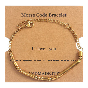 The Morse Code Bracelet - "I Love You" is a meaningful and elegant accessory, perfect for expressing love in a unique way. Crafted from high-quality stainless steel, the bracelet spells out the heartfelt message "I Love You" in Morse code. Its lightweight design and durable build make it suitable for daily wear, while the intricate detailing ensures it stands out as a thoughtful gift for someone special.