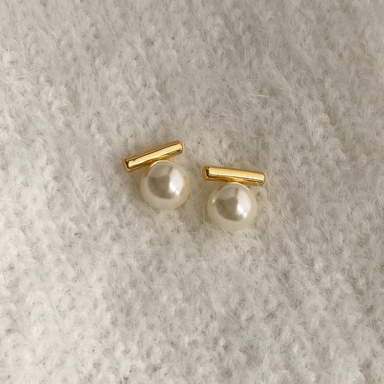 The Gold Pearl Bar Earrings are an exquisite blend of modern design and timeless elegance. Featuring a lustrous pearl paired with a sleek gold bar, these earrings offer a sophisticated look that effortlessly elevates your outfit, whether it's for the office or a night out.