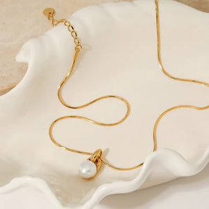 Embrace timeless sophistication with the Pearl Elegance Pendant. Featuring a lustrous pearl delicately suspended from a sleek gold-plated setting, this necklace is the epitome of understated luxury. The fine, lightweight chain adds a touch of refinement, making it a perfect choice for both everyday elegance and special occasions. Hypoallergenic and crafted for lasting brilliance, this pendant is a must-have for those who appreciate classic beauty.