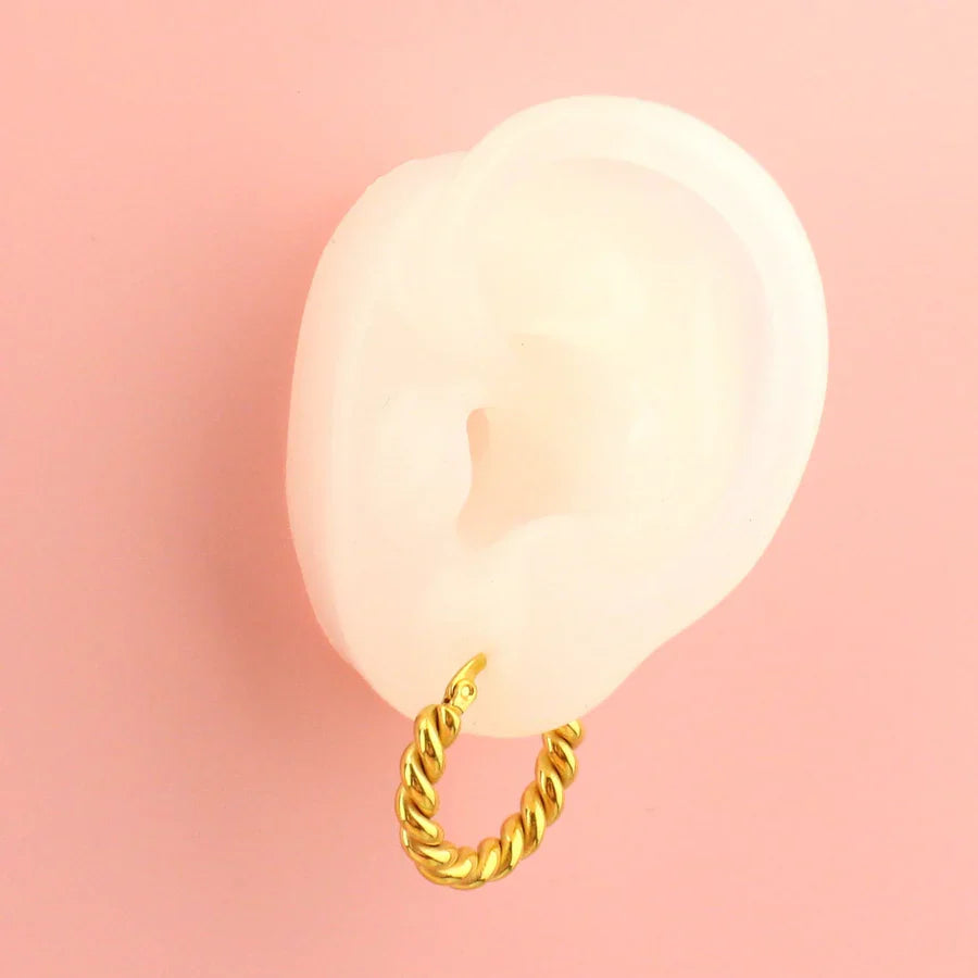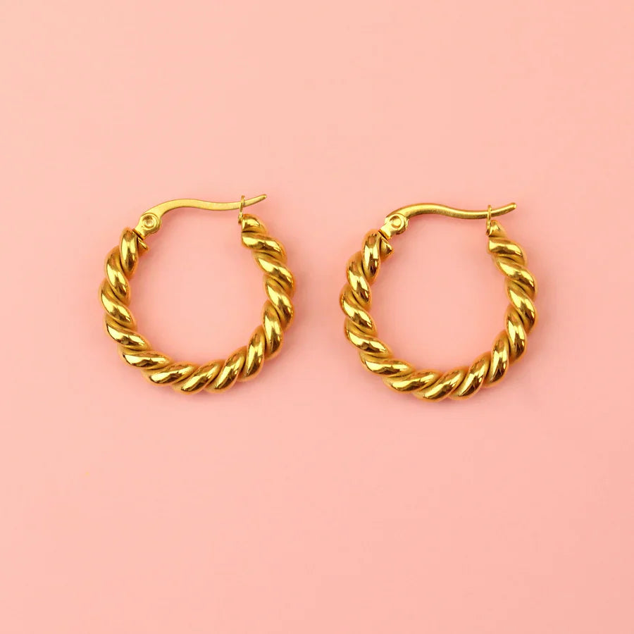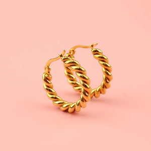 Make a bold statement with the Rope Hoop Earrings, featuring a sophisticated twisted rope design in a glossy gold finish. These lightweight earrings are perfect for adding elegance and charm to any outfit.