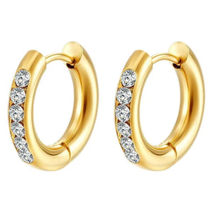 Let your style shine effortlessly with our Solara Hoops—a perfect blend of timeless elegance and modern minimalism. These exquisitely crafted huggie hoops feature a sleek gold finish adorned with shimmering cubic zirconia stones that catch the light from every angle. Designed to be lightweight, waterproof, and tarnish-resistant, the Solara Hoops are as versatile as they are beautiful, taking you from day to night with ease.
