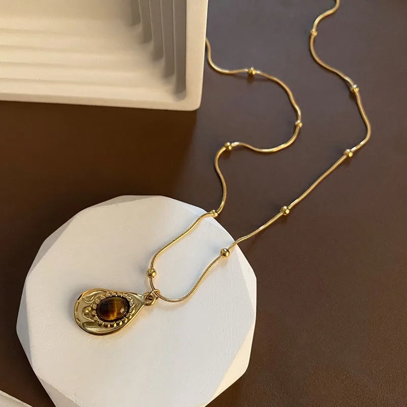 The Tiger Eye Teardrop Pendant is a stunning piece featuring a warm and earthy tiger eye stone nestled within a golden teardrop design. This pendant radiates sophistication and natural elegance, making it a perfect accessory for every occasion.