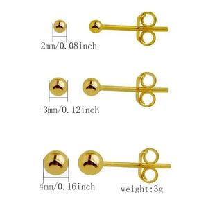 These Gold Stud Earrings are the epitome of understated elegance and versatility. Available in three sizes (2mm, 3mm, and 4mm), they are perfect for creating a minimalistic look or layering for a curated ear. Crafted from hypoallergenic materials, they are lightweight and comfortable for all-day wear.