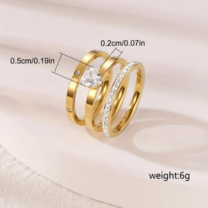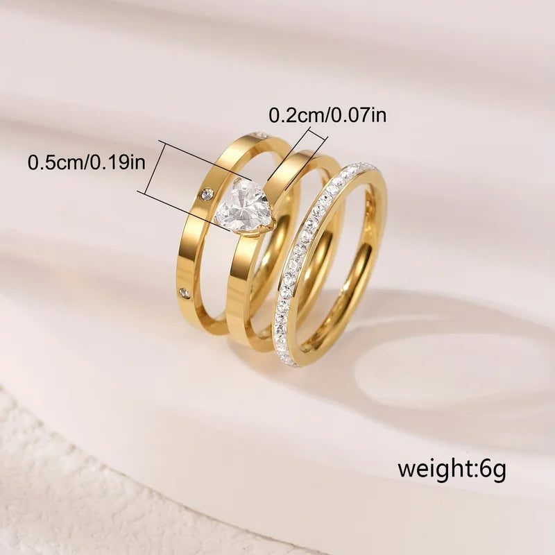 The Trinity Glow Ring Set brings together three perfectly balanced designs—sleek minimalism, sparkling zircon brilliance, and a statement solitaire centerpiece. Crafted in golden titanium steel with radiant zircon stones, this trio creates a timeless harmony of shine and sophistication. Wear them stacked for a bold, glamorous effect or style them separately for a delicate touch of elegance.