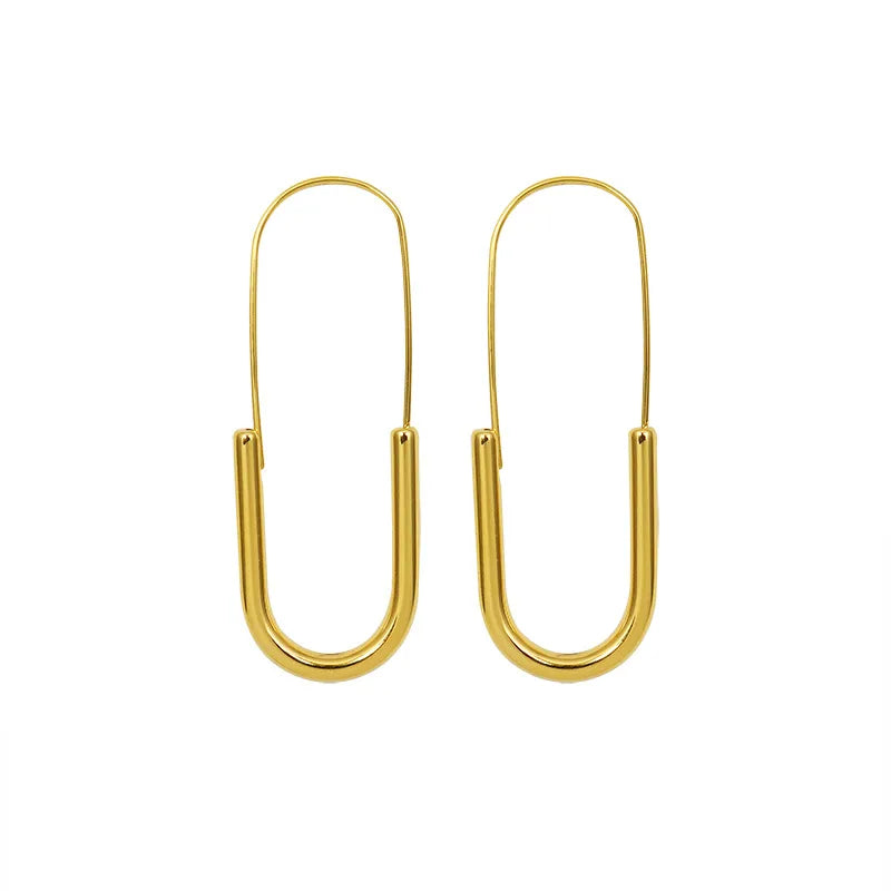 The U-Shaped Gold Dangle Earrings are a modern and sleek accessory, perfect for minimalists who love a bold design. Crafted with 18k gold plating, these lightweight and hypoallergenic earrings feature a unique U-shaped design that adds elegance and sophistication to any outfit. Versatile and stylish, they are ideal for both casual and formal settings.